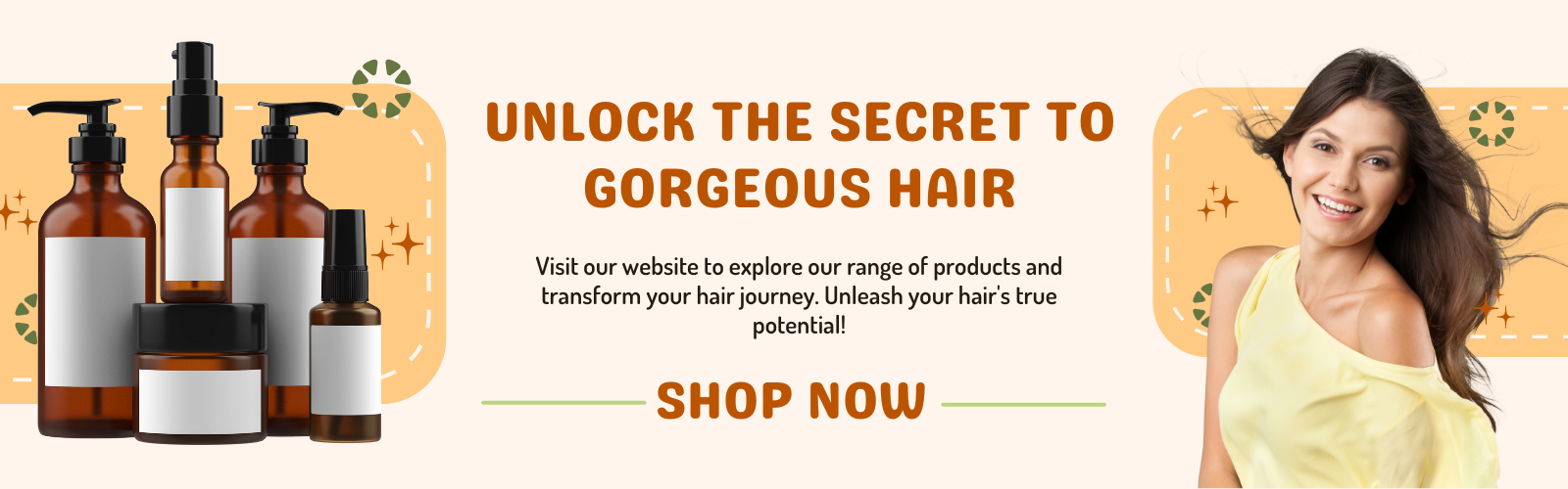 Orange and Cream Minimalist Hair Care Product YouTube Display Ad (1600 x 500 px)